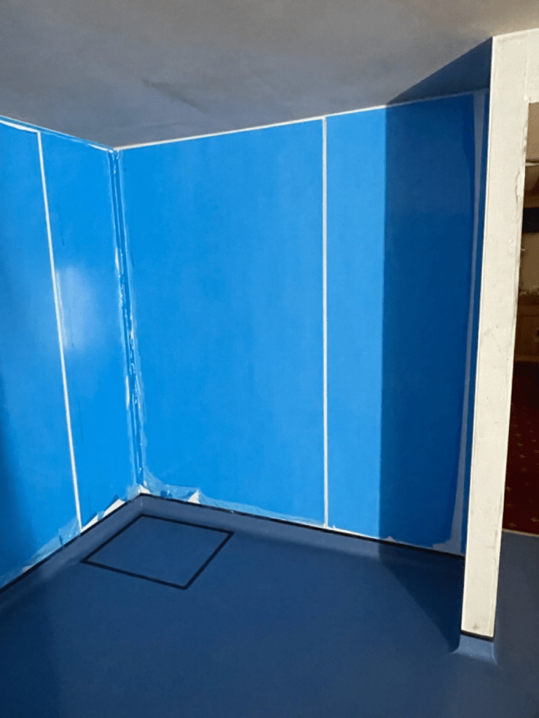 The walls have had hygienic plastic cladding put up, so the kitchen will be easy to keep clean, and Hudspeths flooring have installed a new kitchen floor. Plus Vincent has made good the roof ready for the ventilation.